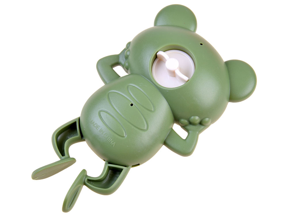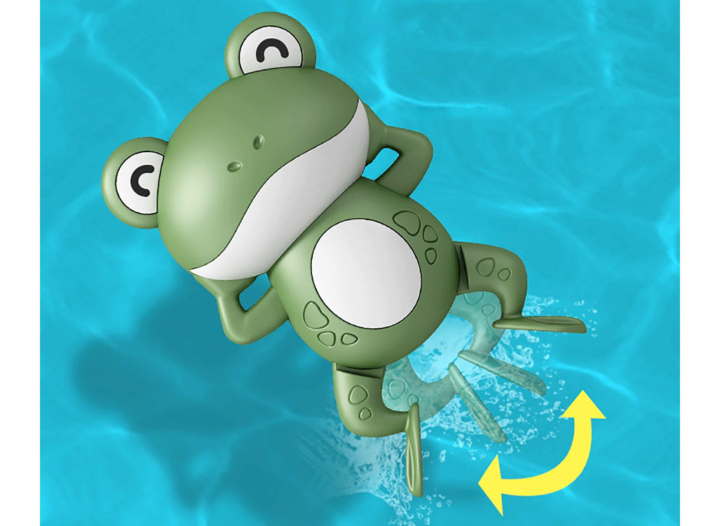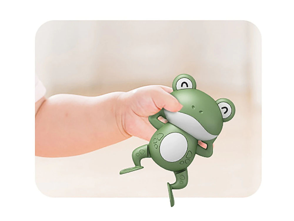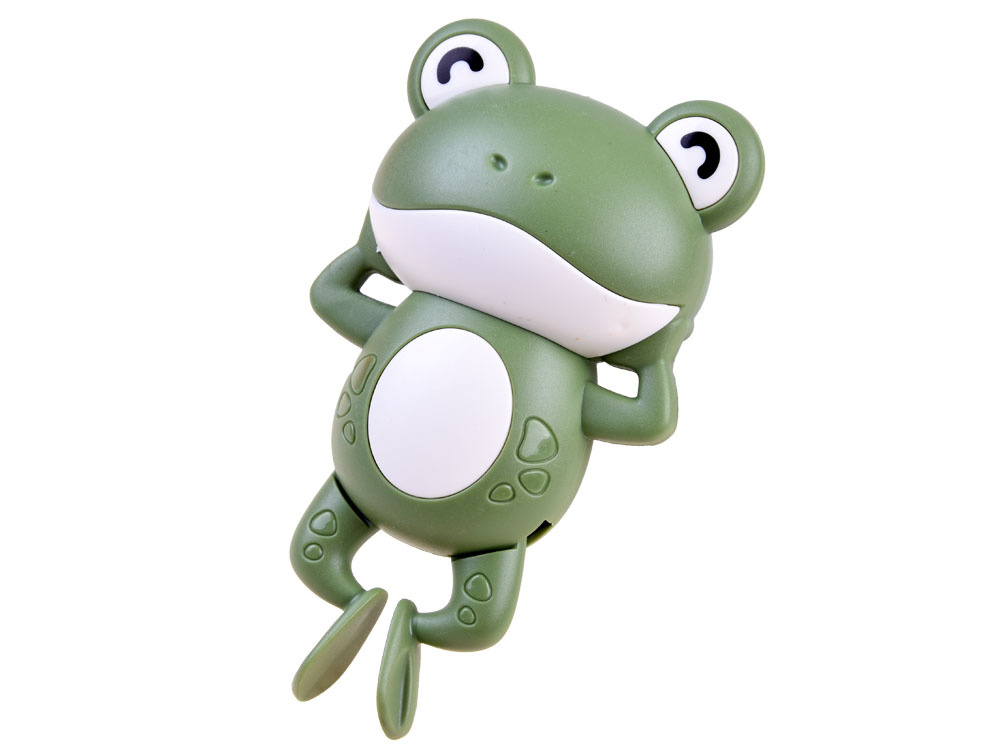 Kolorowa Żabka to zabawka dla każdego fana kąpieli wodnych jak i Maluszków, które nie przepadają za codzienną toaletą. Dzięki niej kąpiel będzie dużo bardziej przyjemniejsza. Zabawka w całości wykonana jest z wytrzymałego plastiku w przyjemnych kolorach, z tyłu głowy posiada pokrętło, które należy nakręcić. Zanurz żabkę w wodzie wówczas zaczynie poruszać nóżkami i pływać.