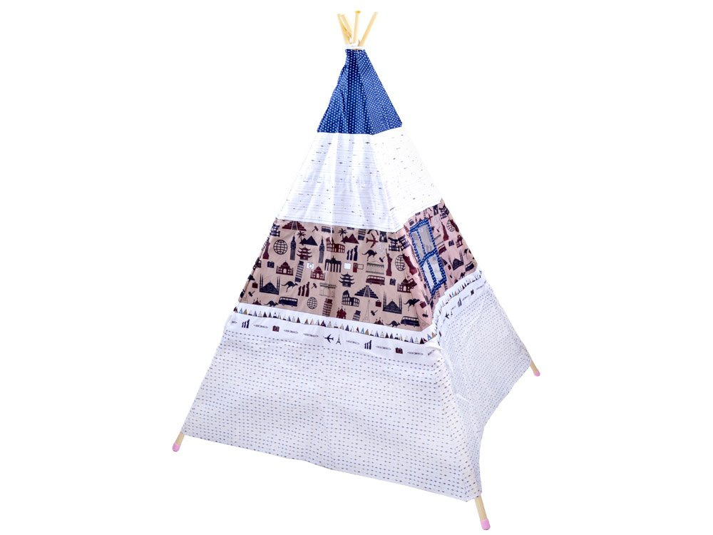 Namiot w stylu Tipi zapewne przypadnie do gustu każdemu dziecku. Dzieci uwielbiają mieć sekrety, tajemnice, a taki namiot będzie idealnym miejscem do chowania się, przechowywania skarbów. Namiot do zabawy w pokoju lub ogrodzie wykonany jest z materiału łatwo zmywalnego, a rurki z plastiku. Wigwam można rozłożyć w dowolnym płaskim miejscu, sprawdzi się podczas zabaw w pokoju z misiami, lalkami, autkami, a także w ogrodzie będzie się świetnie reprezentował. W namiocie są troczki do związania boków, aby było swobodne wejście i wyjście z niego. Okno przez, które można wyglądać czy ktoś nieproszony się nie skrada do namiotu, też jest bardzo potrzebne.
