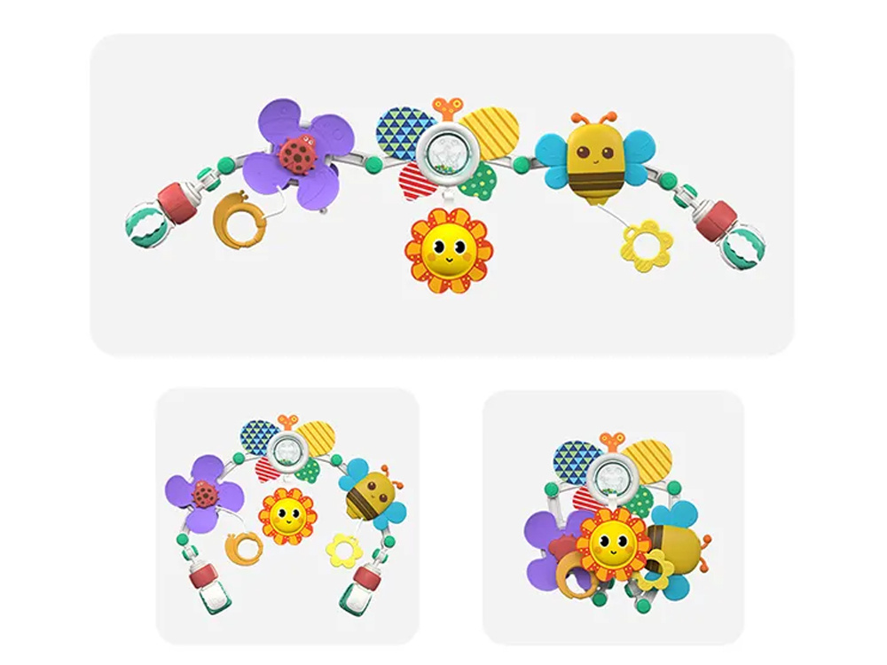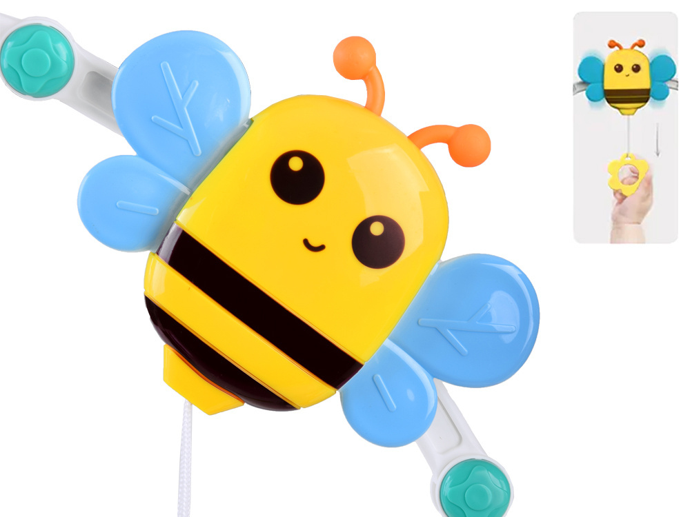 - pszczółka uruchamiana przez dziecko za pomocą uchwytu w kształcie kwiatuszka - pszczółka rusza skrzydełkami