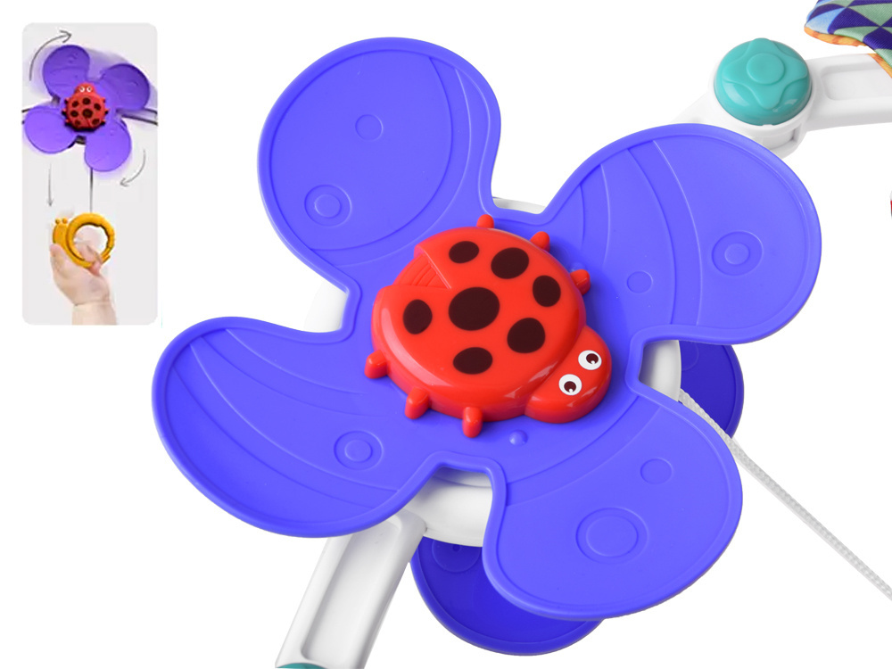 - wiatraczek z biedronką uruchamiany przez dziecko za pomocą uchwytu w kształcie ślimaka - wiatraczek się kręci