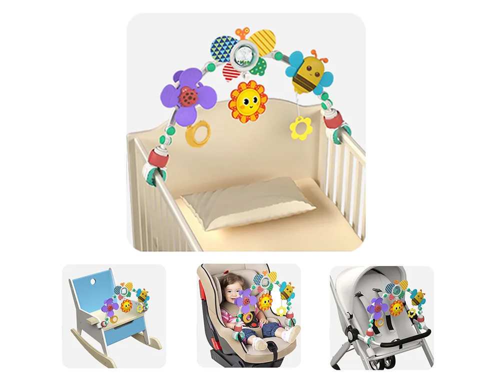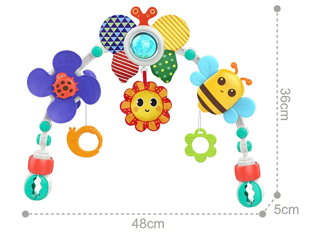 Kolorowy pałąk do wózka, fotelika, leżaczka to świetna propozycja dla każdego maluszka. Zabawka jest bardzo łatwa w montażu,a regulacja jej kąta nachylenia pozwoli dostosować ją do potrzeb każdego dziecka. Pałąk, do którego przyczepione są kolorowe zabawki zachęci do chwytania i wyciągania rączek, rozwija umiejętność skupienia uwagi, kształtuje wyobraźnię dziecka. Zabawki zawieszone na łuku umożliwią każdemu maluszkowi rozwój motoryki dużej, ruchów precyzyjnych oraz zmysłów. Podczas zabawy dziecko uczy się rozróżniać kształty i kolory.
