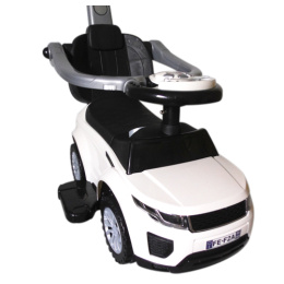 Pojazd generalnie przeznaczony do użytku zewnętrznego, jednak jego ergonomiczna budowa sprzyja i pozwala używać go również w większych pomieszczeniach takich jak taras czy salon. Idealny dla dzieci w wieku 1-3 lat. Muzyka i klakson sterowana przez dziecko z poziomu kierownicy. Wyposażenie pojazdu: