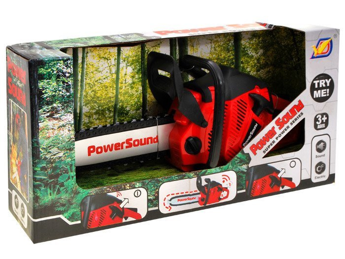 Piłę uruchamia się lekko pociągając "linkę od rozrusznika" znajdującą się z lewej strony. Usłyszymy wówczas rozruch sprzętu, a następnie trzymając piłę za rączkę wciskamy przycisk, który wprawia w ruch łańcuch piły. Warkot, który wydaje zabawka, jest bardzo realistyczny i zapewne spodoba się każdemu małemu chłopcu.