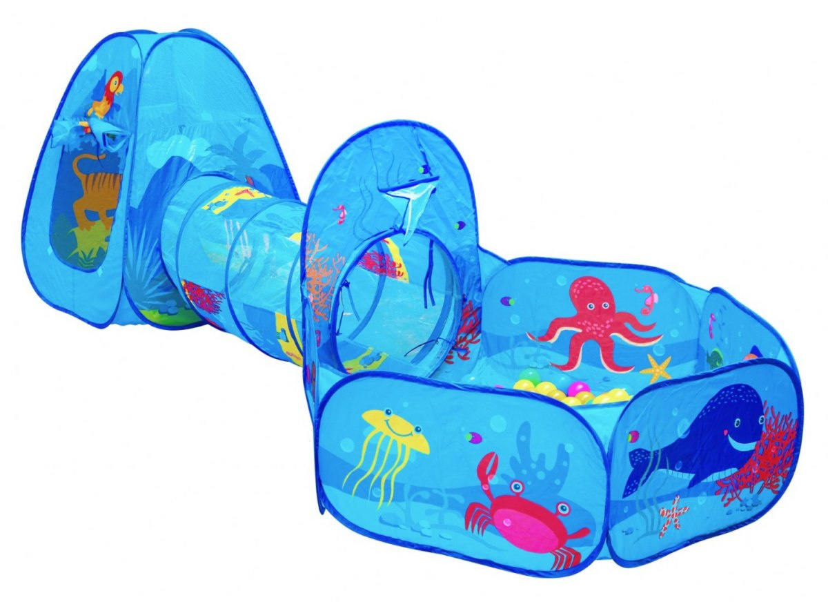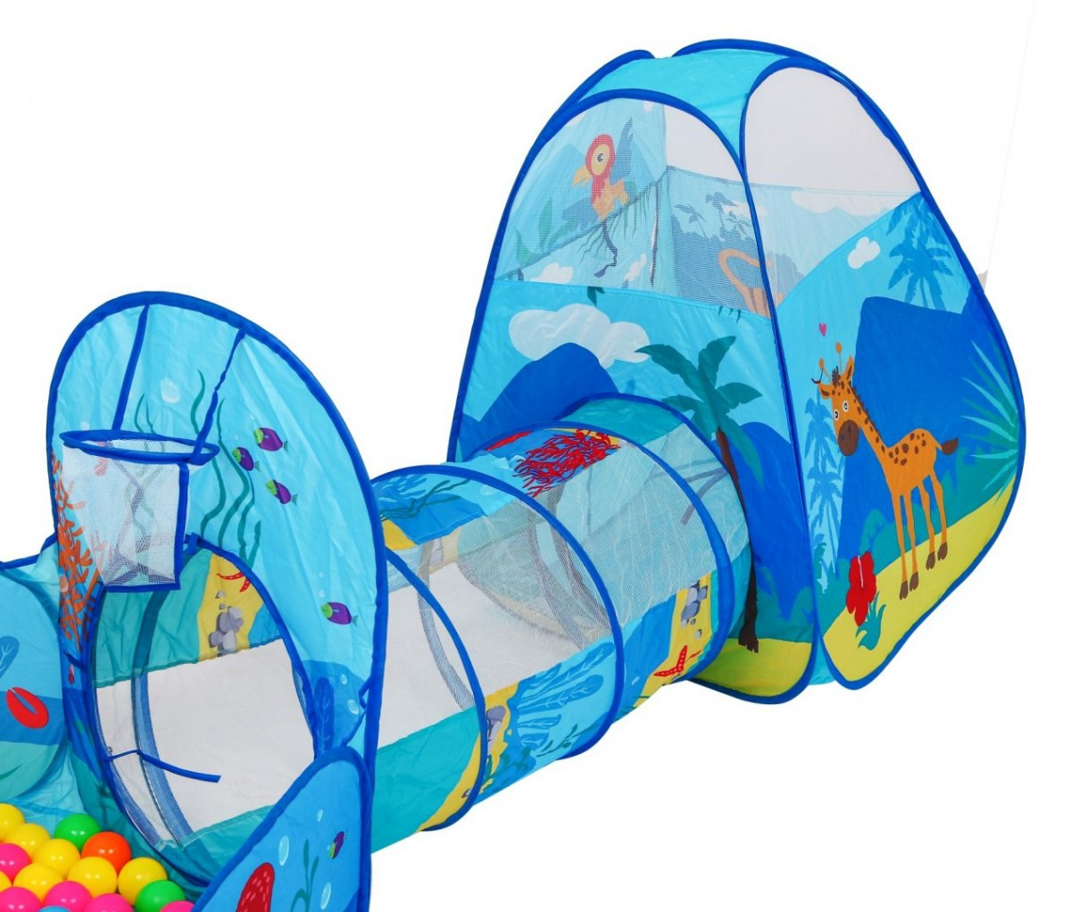 | - cały zestaw po rozłożeniu * wysokość ok. 90 cm * szerokość ok. 120 cm - namiot ok. 90 cm x 70 cm - tunel ok. długość ok. 101 cm, średnica ok. 44 cm, - suchy basen ok. 120 cm x 36 cm Wymiary opakowania ok. 49 cm x 39,5 cm x 15,5 cm. |