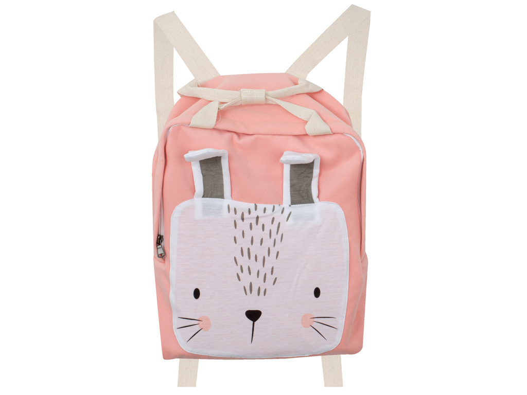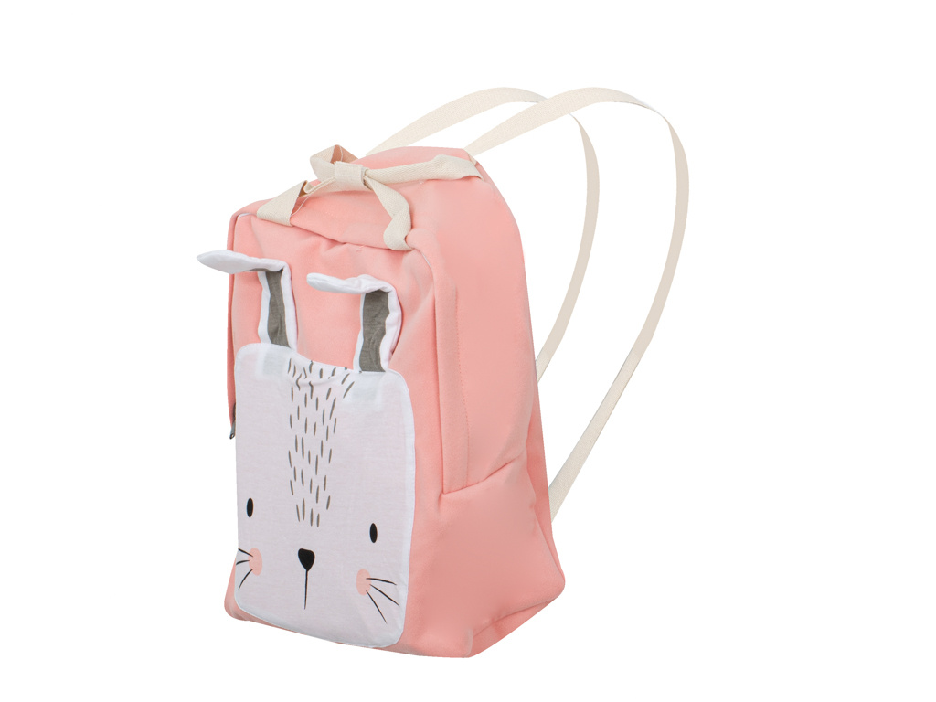 Uroczy plecak w nowoczesnym stylu z wzorem króliczka z pewnością skradnie serce każdego przedszkolaka.