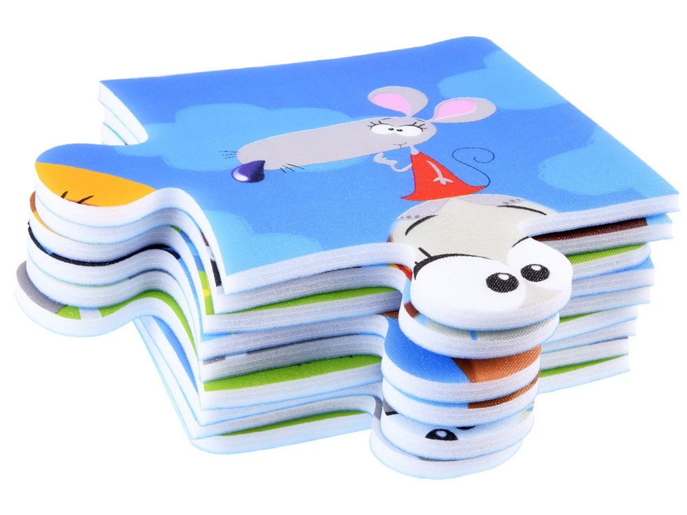 Podczas układania puzzli maluch poznaje kształty, kolory, rozwija wyobraźnię, uczy się szybkiego reagowania i kojarzenia. Puzzle wyciszają i uczą cierpliwości. W opakowaniu znajduje się 9 dużych, miękkich elementów przedstawiających kolorowe zwierzęta. Wesoła grafika przyciągnie wzrok każdego małego fana przygód.