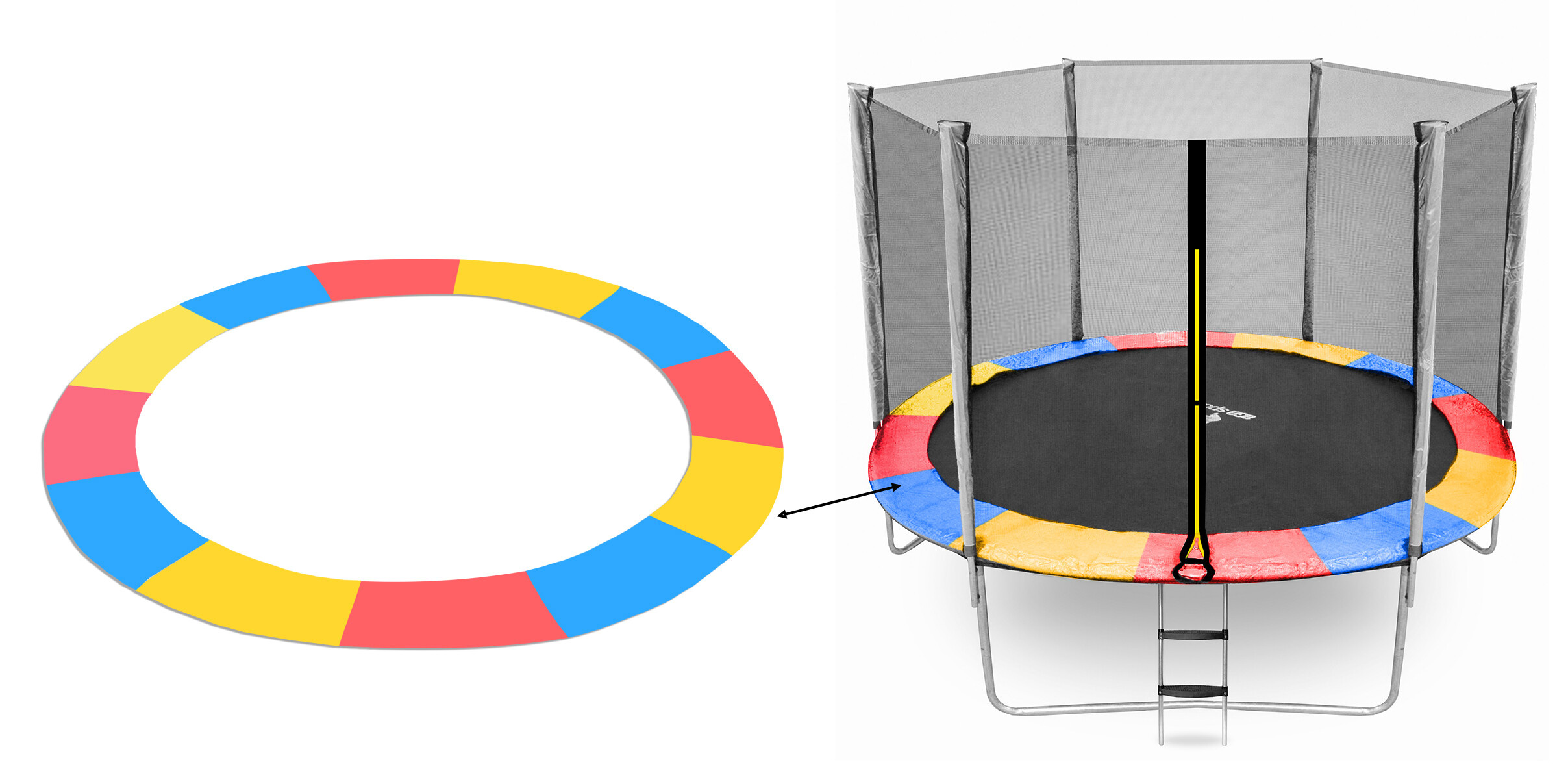 Specyfikacja osłony sprężynowej do trampolin 300, 304 i 305 cm (10 ft) Tricolor.