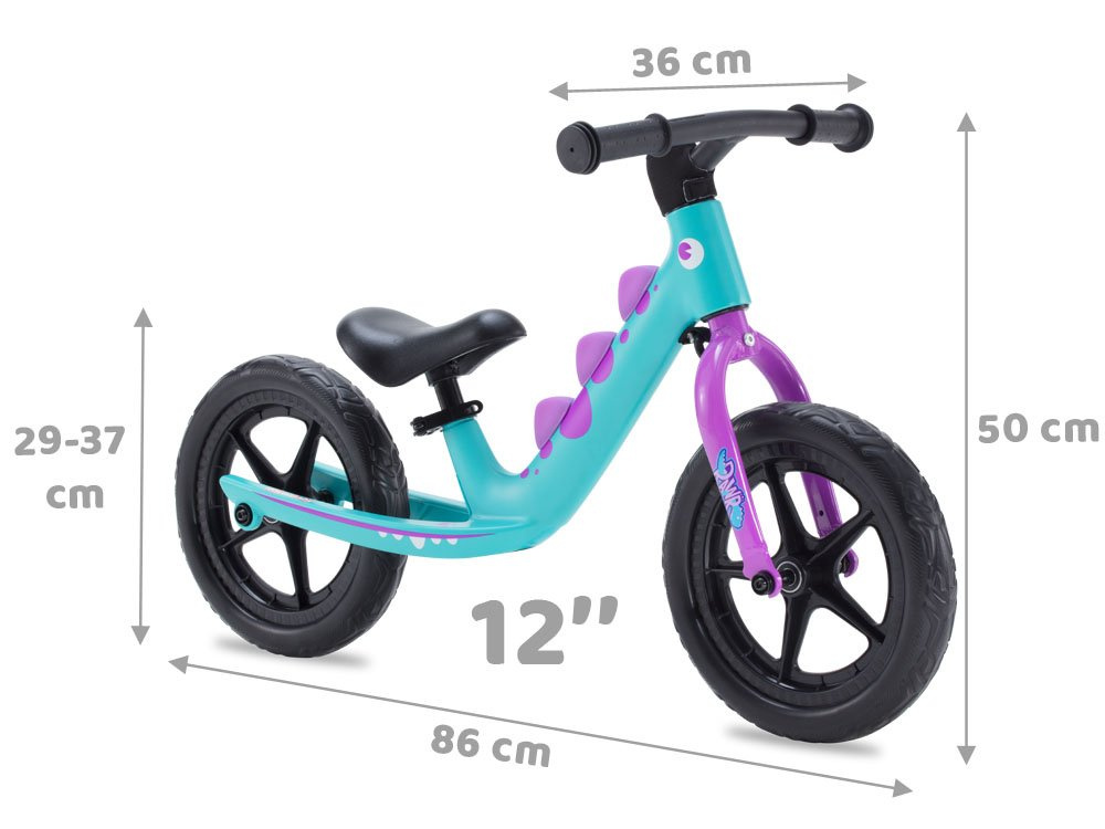 Rowerek biegowy koła EVA 12cal RoyalBaby to lekki wygodny jeździk w kolorze niebiesko - różowym w motywie dinozaura. Idealnie sprawdzi się dla dzieci już od 3 roku życia. W trakcie zabawy dziecko będzie ćwiczyło swój zmysł równowagi i ogólną koordynację ruchową, umiejętności tak niezbędne do późniejszej jazdy na rowerze z pedałkami. Dzięki regulowanemu siodełku rowerek będzie rósł razem z naszym małym rowerzystą. Lekka Rama Magnezowa rowerka oraz ogranicznik skrętu w kierownicy zapewni maluchowi bezpieczne manewrowanie podczas jazdy. Royalbaby to marka rowerów przeznaczona dla dzieci. Produkty tej marki charakteryzują się wysoką jakością wykonania, atrakcyjnym wyglądem oraz innowacyjnością. Royalbaby gwarantuje bezpieczną i przyjemną jazdę każdemu dziecku.
