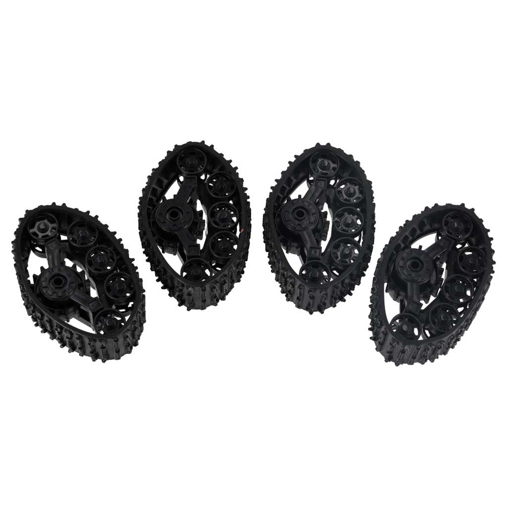 Auto posiada gumowe gąsienice i gumowe opony, które umożliwiają jazdę na różnych nawierzchniach.