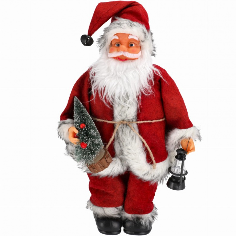 MIKOŁAJ świąteczny DUŻY 40 cm   Wysokość: 40 cm (do wysokości czubka głowy) Szerokość: 30 cm Śliczny Mikołaj doda uroku i magii Waszym Świętom. PIĘKNA OZDOBA - IDEALNY POMYSŁ NA PREZENT Mikołaj wykonany z plastiku, na głowie ma wełnianą czapkę wykończoną futerkiem z dzwoneczkiem na samym jej czubku, pod pachą niesie choinkę. Figurka ma wysokość ok. 40 cm, jest idealna do postawienia w ganku, przy drzwiach wejściowych, przy kominku, obok świątecznego stołu i w każdym innym zakątku, który można zagospodarować pod magię Świąt.