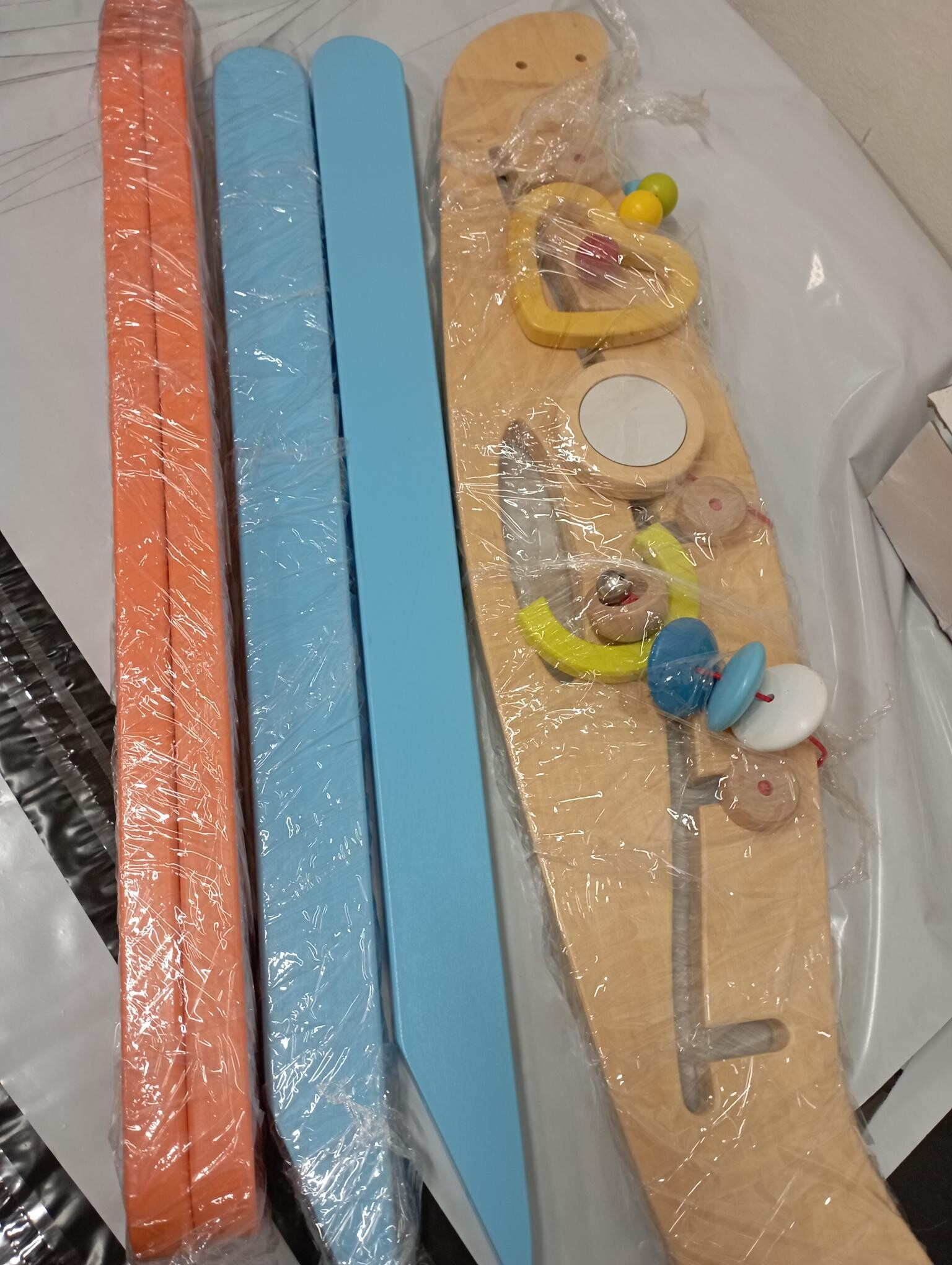 Dzięki temu drewnianemu trapezowi do zabawy najmłodsze dzieci mogą ćwiczyć swoje mięśnie. Dotykowe figurki – takie jak dzwonek, lusterko czy kolorowe drewniane kulki – zapewniają pierwsze doświadczenia w koordynacji wzrokowo-ruchowej. Trapez pomaga w rozpoznawaniu kolorów, rozbudza ciekawość dziecka i stymuluje zmysły. Można zmieniać położenie trzech wiszących elementów. Dzięki zintegrowanemu uchwytowi jest łatwy w przenoszeniu. Produkt wymaga montażu, dołączona jest ilustrowana instrukcja montażu. Główne cechy: zabawka multisensoryczna, stymuluje zmysły, kolorowy design, ćwiczy koordynację wzrokowo-ruchową, inspiruje do kreatywnej zabawy.