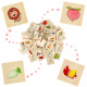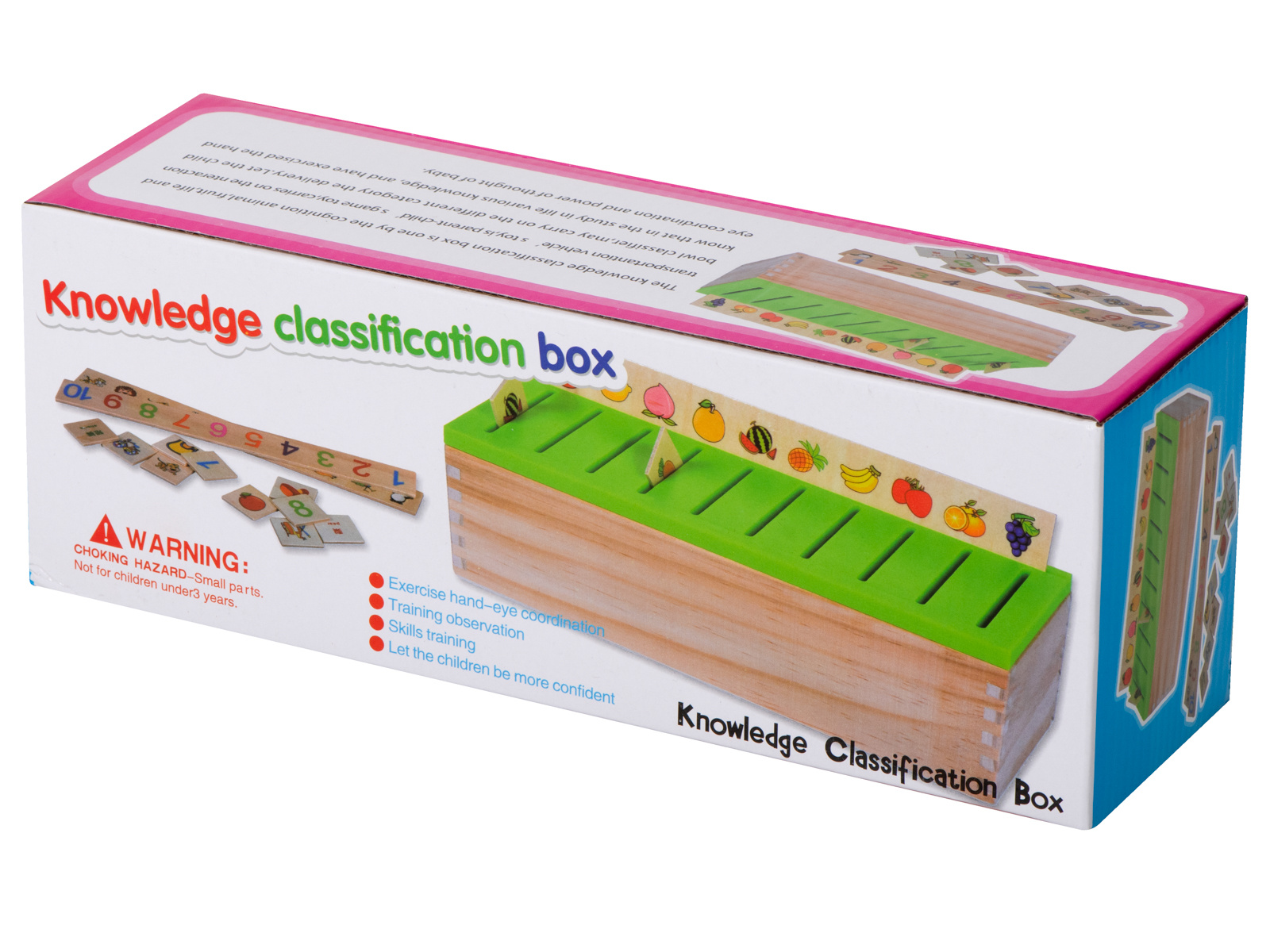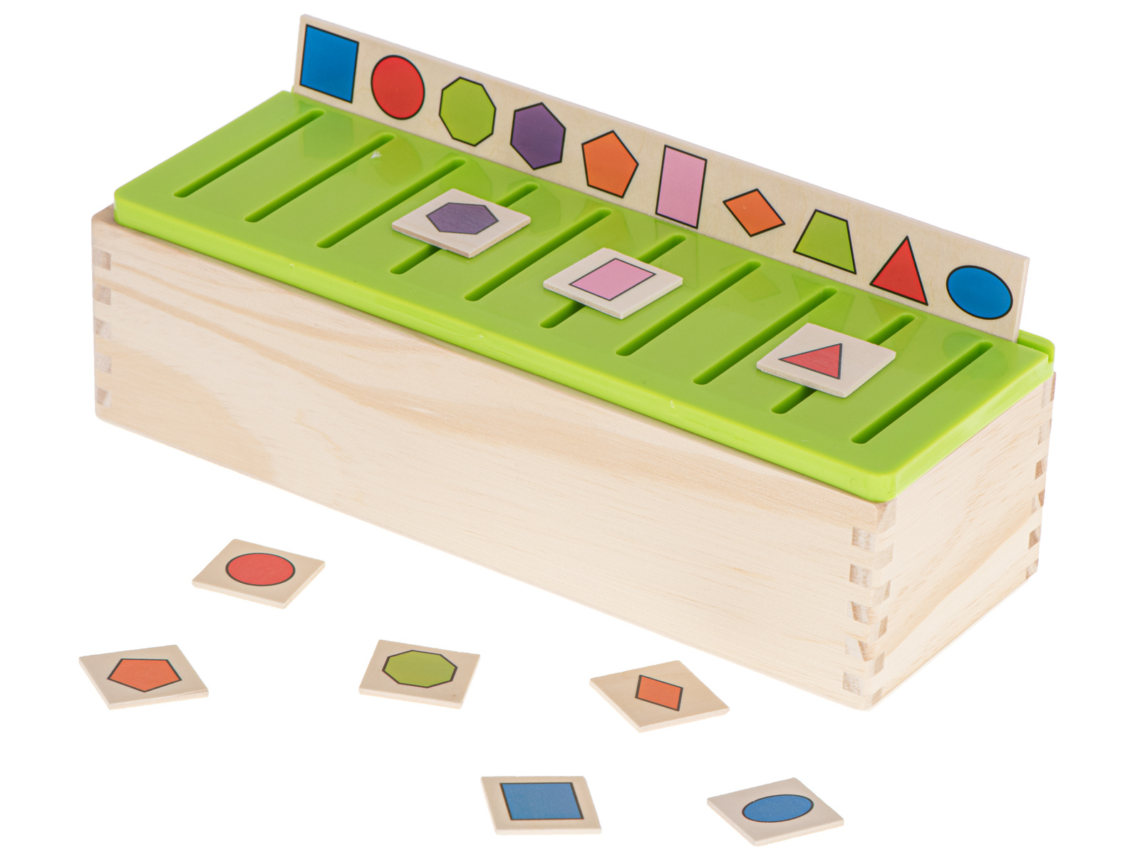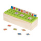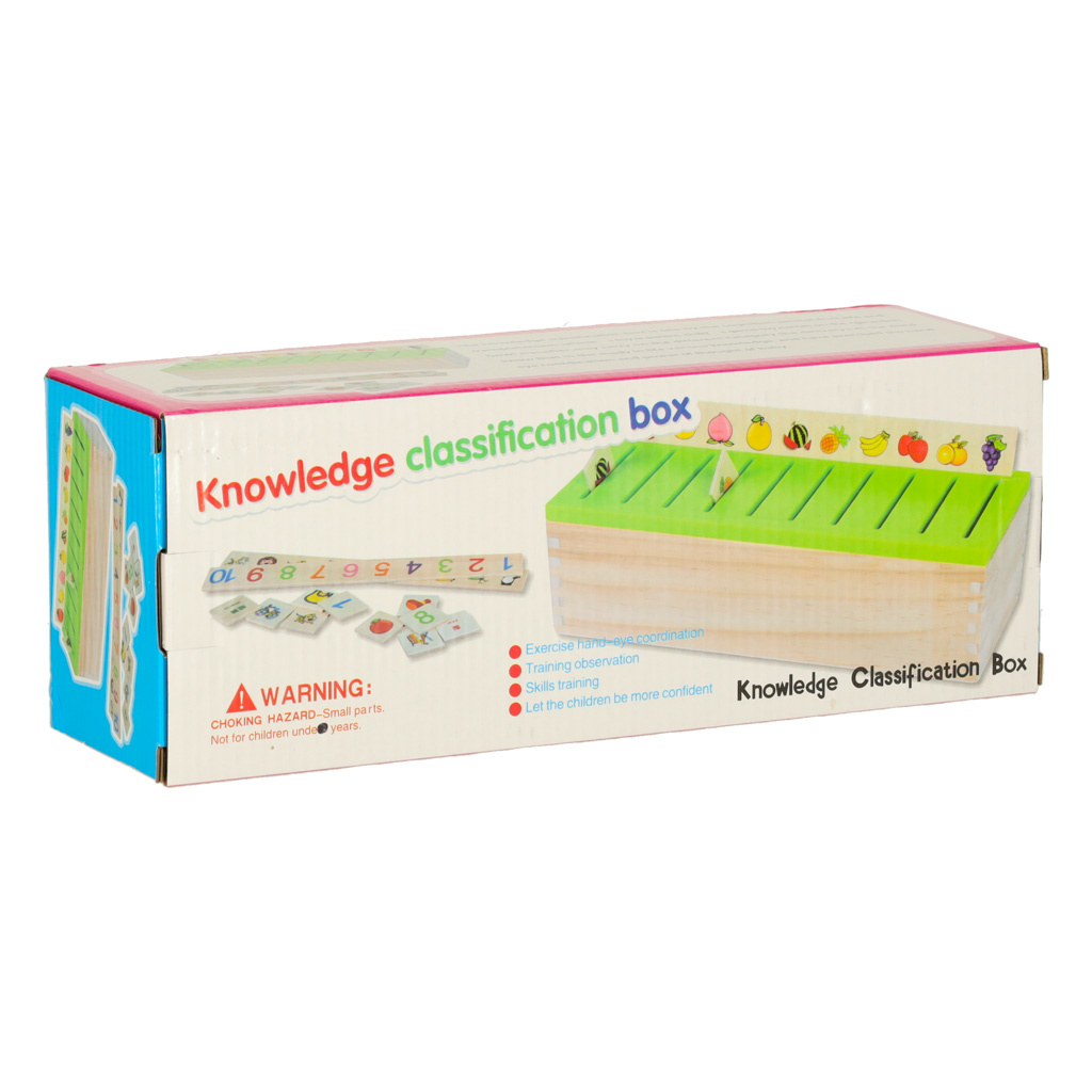 Zabawa polega na wrzuceniu w odpowiedni otwór takiego samego obrazka jaki jest umieszczony na dużej drewnianej tabliczce nad otworem.