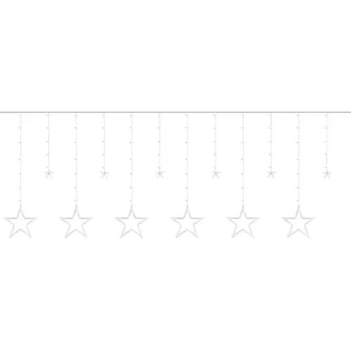 SPECYFIKACJA – ilość trybów: 8; ilość intensywności świecenia: 5; rodzaj oświetlenia: LED; barwa światła: multicolor; ilość sopli: 12; ilość diod: 138; timer: tak 6 / 18h; klasa wodoodporności: IP44; sterownik: tak; pilot: tak; zasilanie: sieć energetyczna; moc: 1,2W; wymiary 1 gwiazdy: 18x18cm; wymiary kurtyny świetlnej 2,5x1m; długość całkowita sznura: 540 cm; długość 1 sopla: 100 cm; waga: 0,371 kg; waga w opakowaniu: 0,494kg.