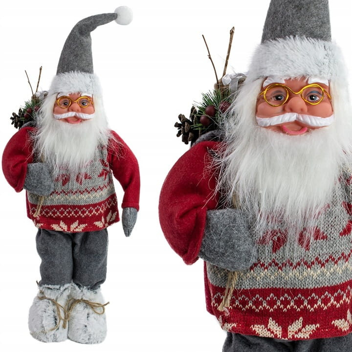 MIKOŁAJ świąteczny DUŻY 61 cm Wysokość: 61 cm (z wyprostowaną czapką) Szerokość: 21 cm Śliczny Mikołaj doda uroku i magii Waszym Świętom. PIĘKNA OZDOBA - IDEALNY POMYSŁ NA PREZENT Mikołaj wykonany z plastiku, na głowie ma wełnianą czapkę wykończoną futerkiem z dzwoneczkiem na samym jej czubku, Figurka ma wysokość ok. 60 cm, jest idealna do postawienia w ganku, przy drzwiach wejściowych, przy kominku, obok świątecznego stołu i w każdym innym zakątku, który można zagospodarować pod magię Świąt.