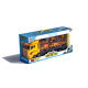 Ciężarówka otwiera się z dwóch stron, z każdej zmieści się 6 aut. Duże przezroczyste drzwi zamkniesz małą blokadą. Dzięki temu maszyny nie wypadną z ciężarówki w trakcie jazdy.