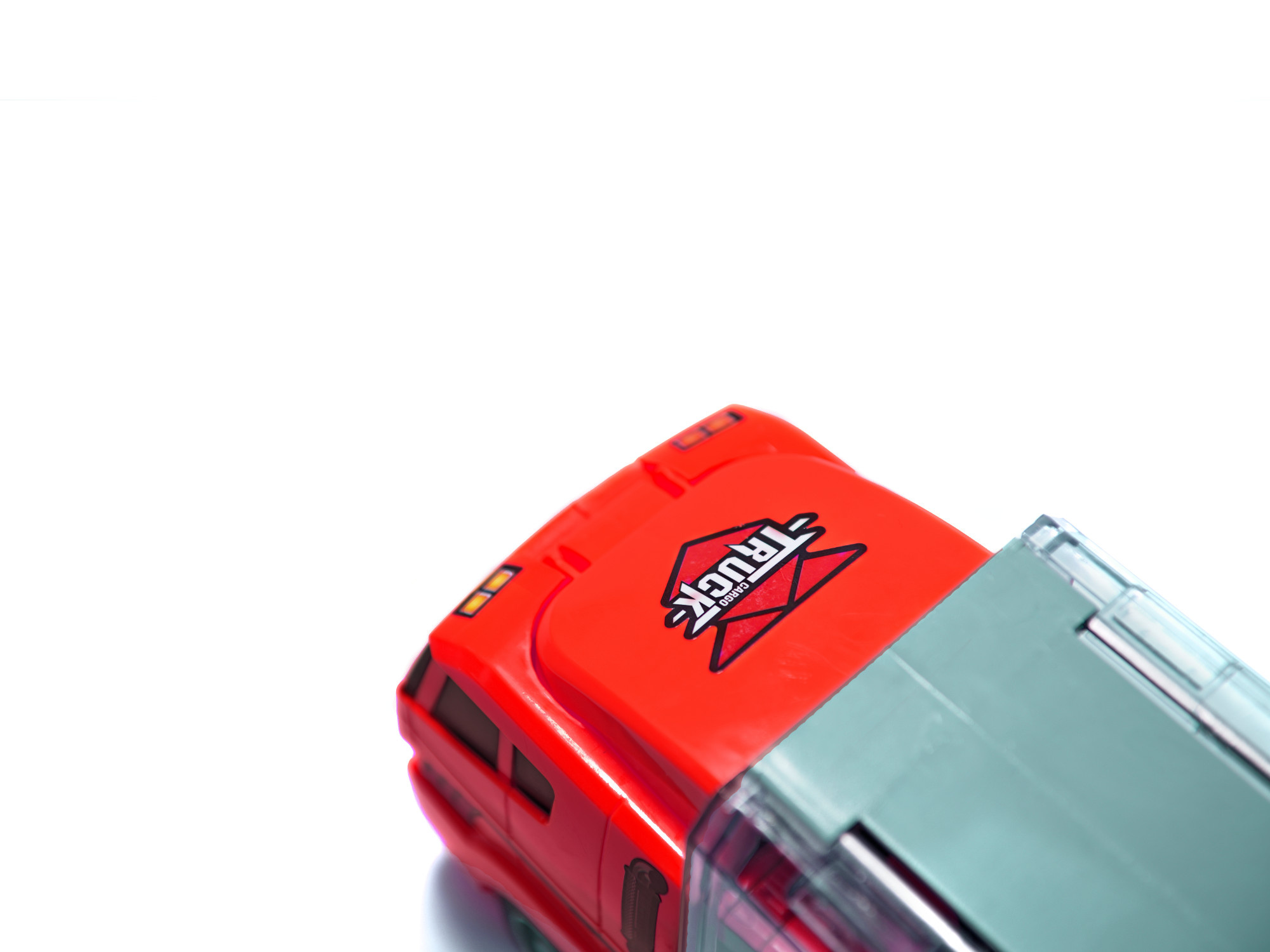 Z przodu ciężarówki znajduje się wyrzutnia do aut! Otwórz szary zderzak i rozwiń rampę, następnie umieść pojazd w wyrzutni i naciśnij przycisk, by nadać mu rozpędu!