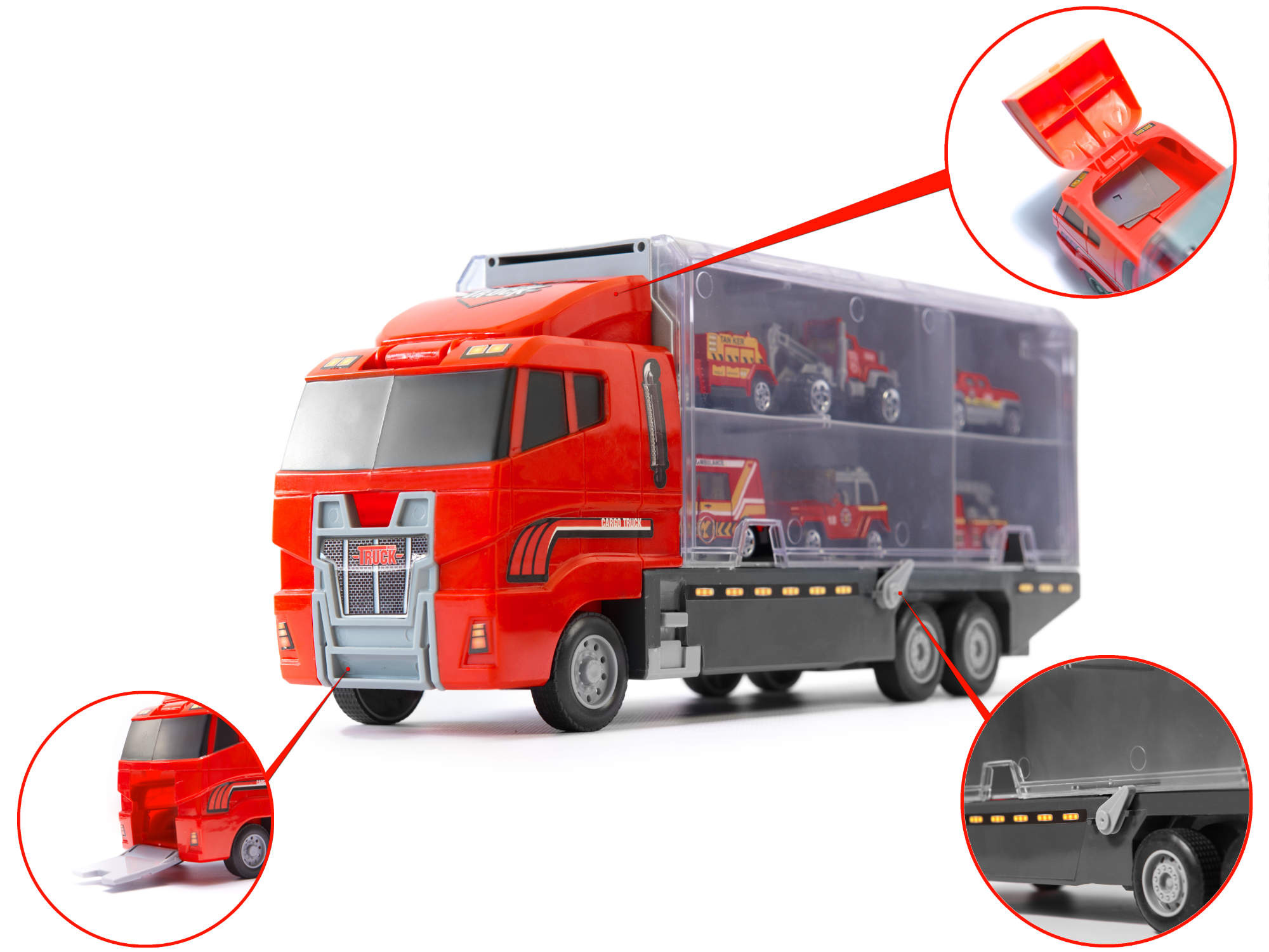 CIĘŻARÓWKA TIR TRANSPORTER + AUTA STRAŻ POŻARNA
