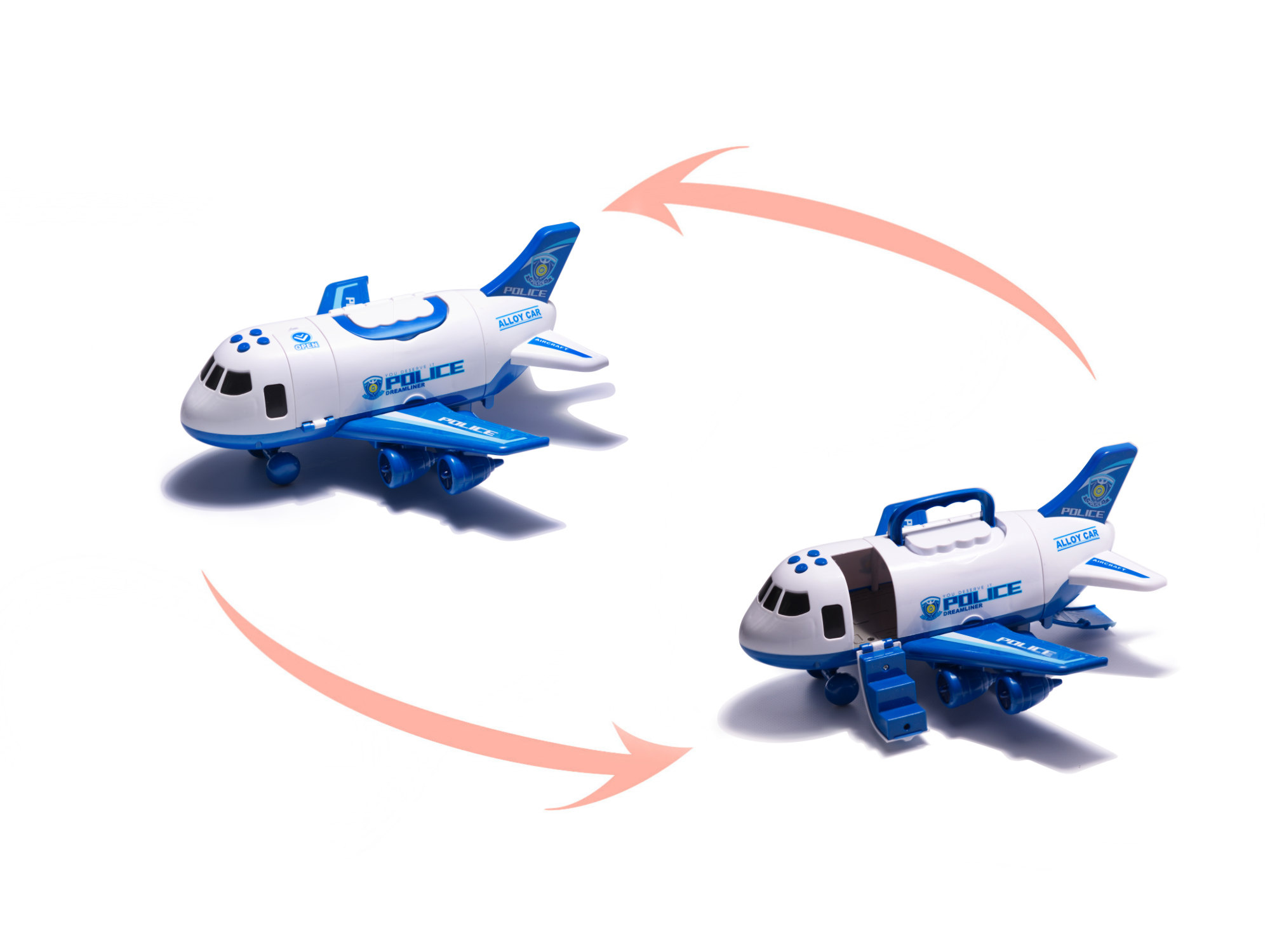 Samolot, jak prawdziwy transporter ciężkiego sprzętu, posiada opuszczaną rampę przy ogonie, która umożliwia wjazd pojazdów. Jest otwierany również od boku, by móc łatwiej manewrować zabawkami wewnątrz.