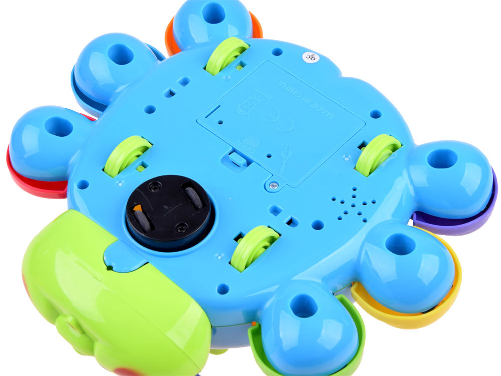 - interaktywna - zabawka gra melodie i jeździ (ucieka) co pomaga przy nauce raczkowania.