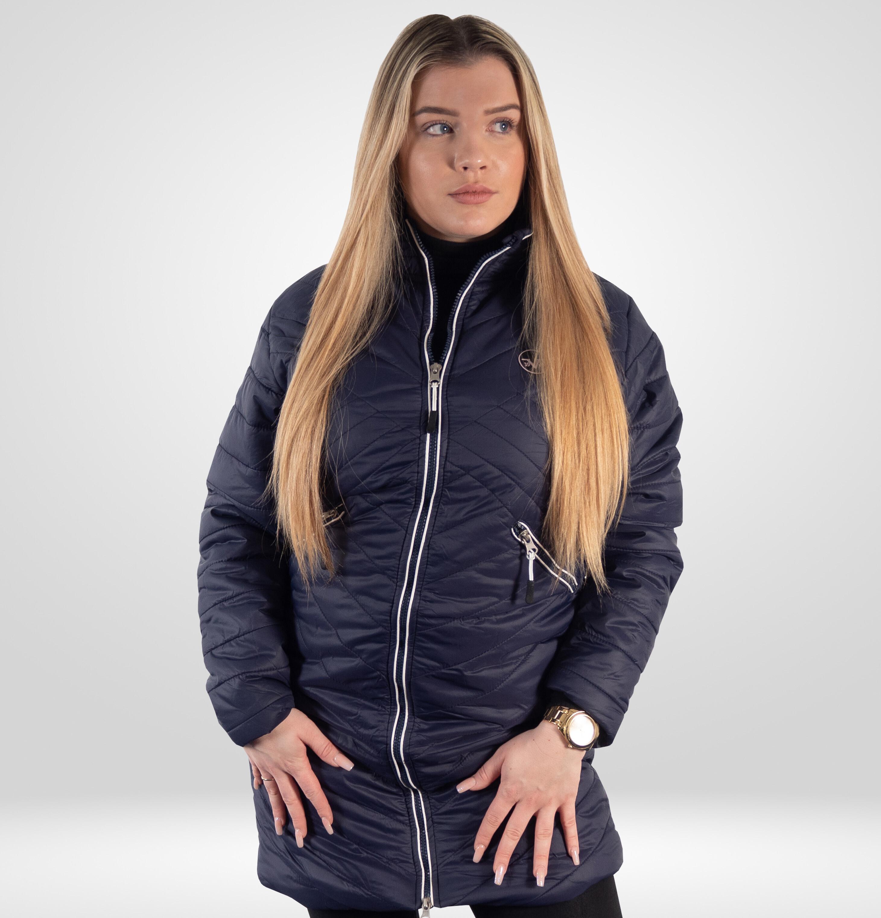 Pikowany płaszcz damski marki Versace 19.model 69 wykonany jest z lekkiego, wiatroszczelnego, oddychającego materiału z wykończeniem hydrofobowym.