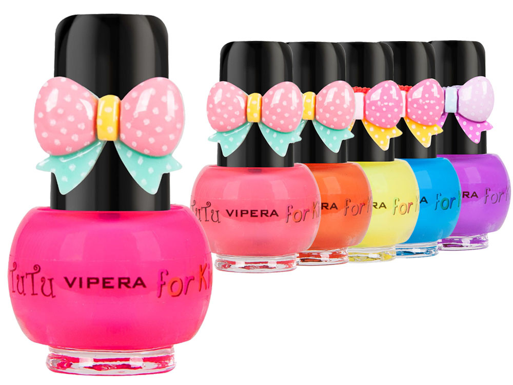 Vipera Lakiery do Paznokci Tu Tu to seria kosmetyków stworzona dla dzieci od 3 roku życia. Lakiery są oparte na bezpiecznych formułach na bazie wody. Neutralne dla delikatnej płytki paznokcia dziecka. Usuwane bez użycia rozpuszczalników, metodą peel-off (zdejmowane z paznokcia jak naklejka). Sześć kolorowych, soczystych, błyszczących i smakowicie pachnących truskawkami odcieni pobudzi fantazję i na pewno będzie pasować do każdej stylizacji. W prezencie do dziewczynki do każdego lakieru dołączona została śliczna, kolorowa gumka do włosów.