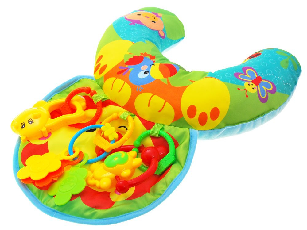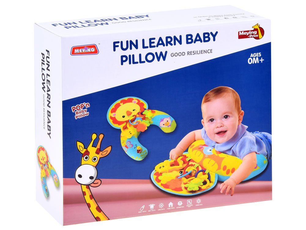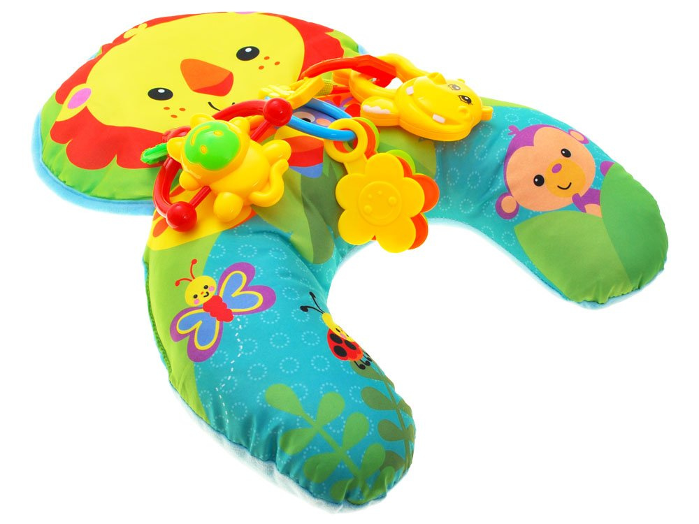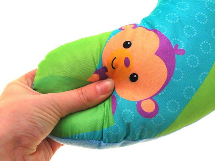 Poduszka stabilizacyjna sprawdzi się podczas opieki nad maleństwem. Poduszka w rewelacyjnej grafice z szeleszczącą podkładką i kolorowymi grzechotkami zapewni wiele wesołej zabawy każdemu maluszkowi.