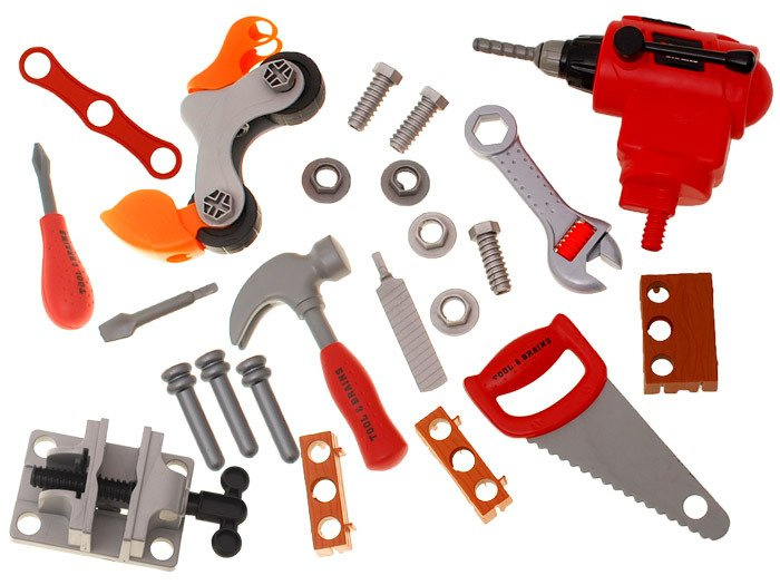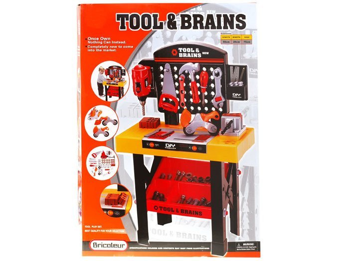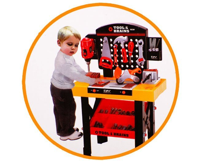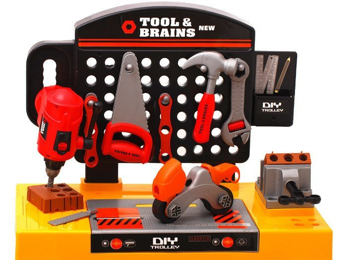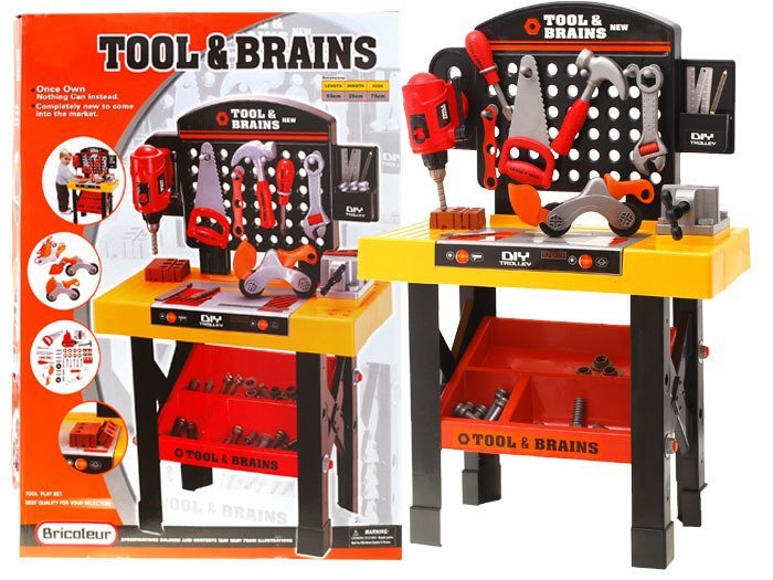 Nowy, edukacyjny, wielofunkcyjny warsztat dla małego mechanika. Wspaniała zabawa w małego mechanika dla dziecka, które interesuje się majsterkowaniem.