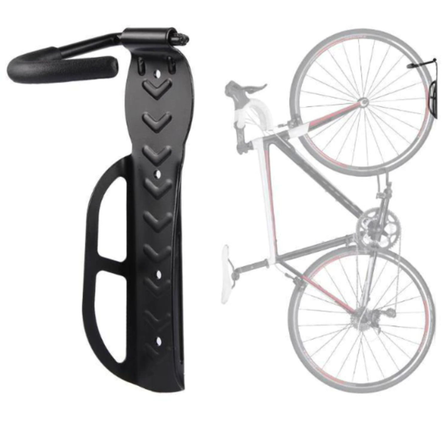 Uchwyt wieszaka pokryty został gumową osłoną w celu zabezpieczania roweru przed uszkodzeniami - nie musisz się martwić o uszkodzenie opon, szprych czy porysowanie się ramy.