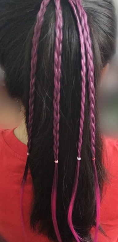 Warkoczyki zostały wykonane z włosów syntetycznych.