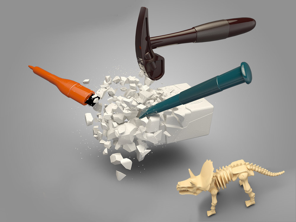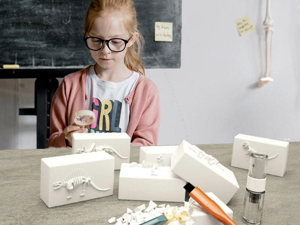 Zestaw małego odkrywcy to zabawa połączona z nauką. Dzięki tej zabawie twoje dziecko zdobędzie wiedzę i rozwinie precyzje podczas wykopywania, ale też zmysł logicznego myślenia podczas składania. Za pomocą narzędzi odkryje szkielet, należy robić to delikatnie, aby ich nie uszkodzić. Sześć rodzajów dinozaurów stworzy małą kolekcję w domu małego odkrywcy.