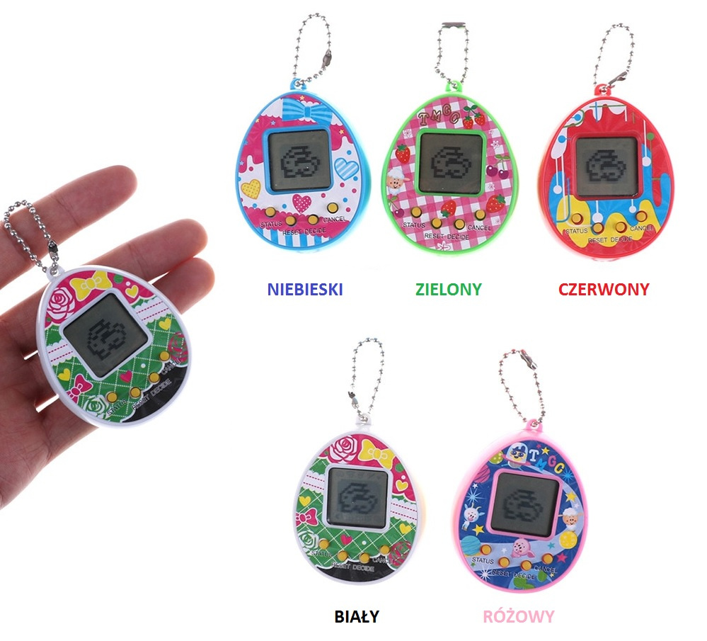 Dostępne kolory: żółty, niebieski, różowy i zielony.