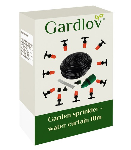 Zraszacz ogrodowy – kurtyna wodna daje przyjemny chłód w najbardziej upalne dni. Kurtynę wystarczy podłączyć do węża ogrodowego lub kranu aby poczuć natychmiastowe ochłodzenie. Mgiełka wodna usuwa zanieczyszczenie z powietrza oraz odstrasza owady latające. Skutecznie działa również na nawodnienie roślinności w ogrodzie.