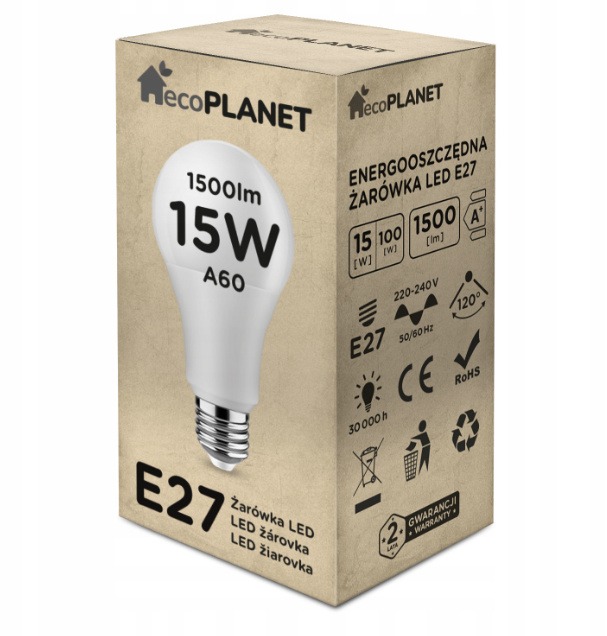 Wysoka wydajność 1500lm dla neutralnej barwy (odpowiednik 60W tradycyjnej żarówki halogenowej)