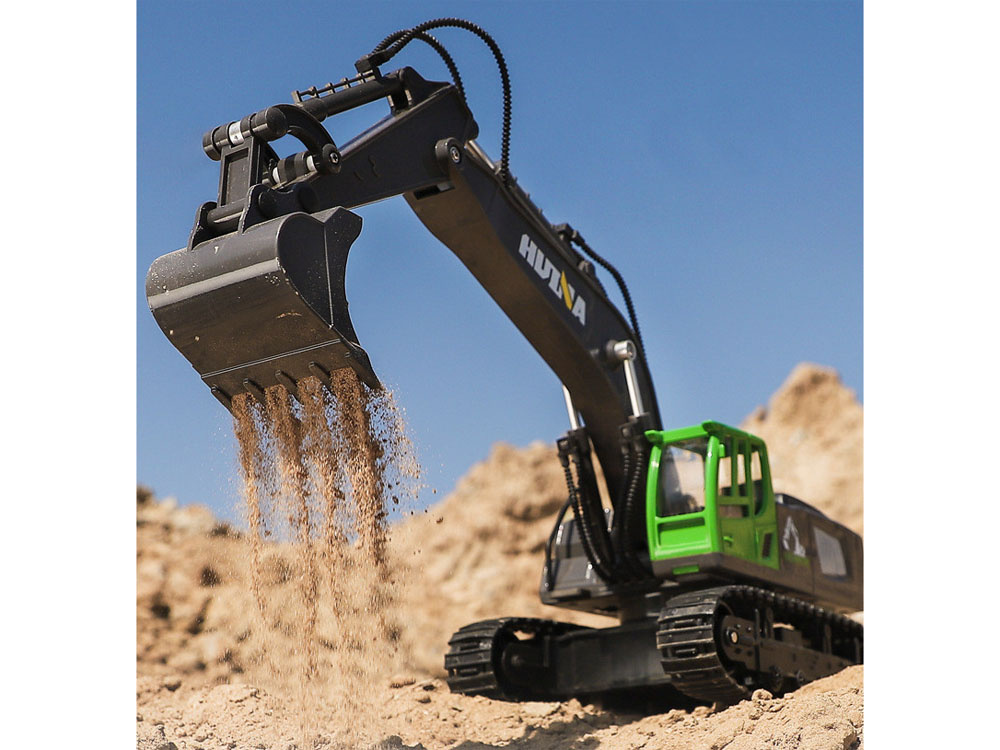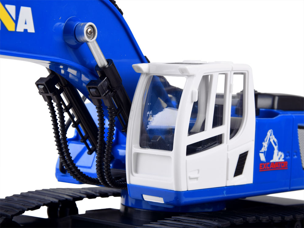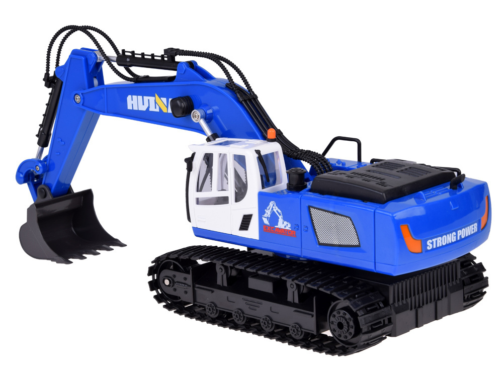 Realistyczna Koparka sterowana za pomocą pilota, na pewno zapewni mnóstwo świetnej zabawy każdemu małemu miłośnikowi pojazdów budowlanych. Koparka porusza się na gumowych gąsienicach w każdym kierunku, posiada oświetloną obrotową o 360° kabinę. Koparka sterowana jest pilotem o częstotliwości 2,4 GHZ. Pilot zapewnia pełne sterowanie koparką, wszelkie prace małego operatora oraz koparki odbędą się bez wysiłku i pod pełną kontrolą. Koparka jeździ do przodu do tyłu skręca w prawo, lewo. Pojazd został wykonany z plastiku poza łyżką która jest metalowa.