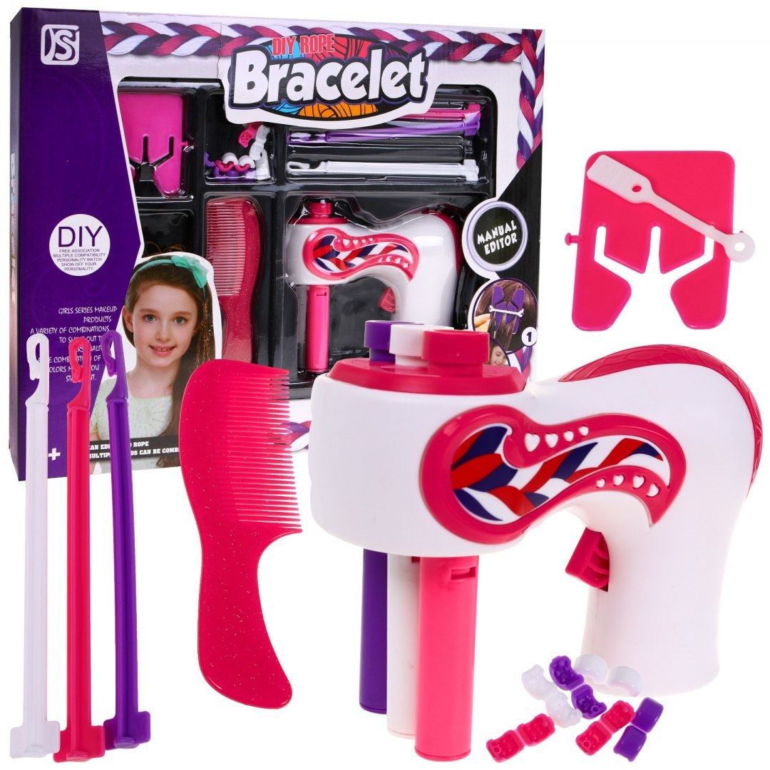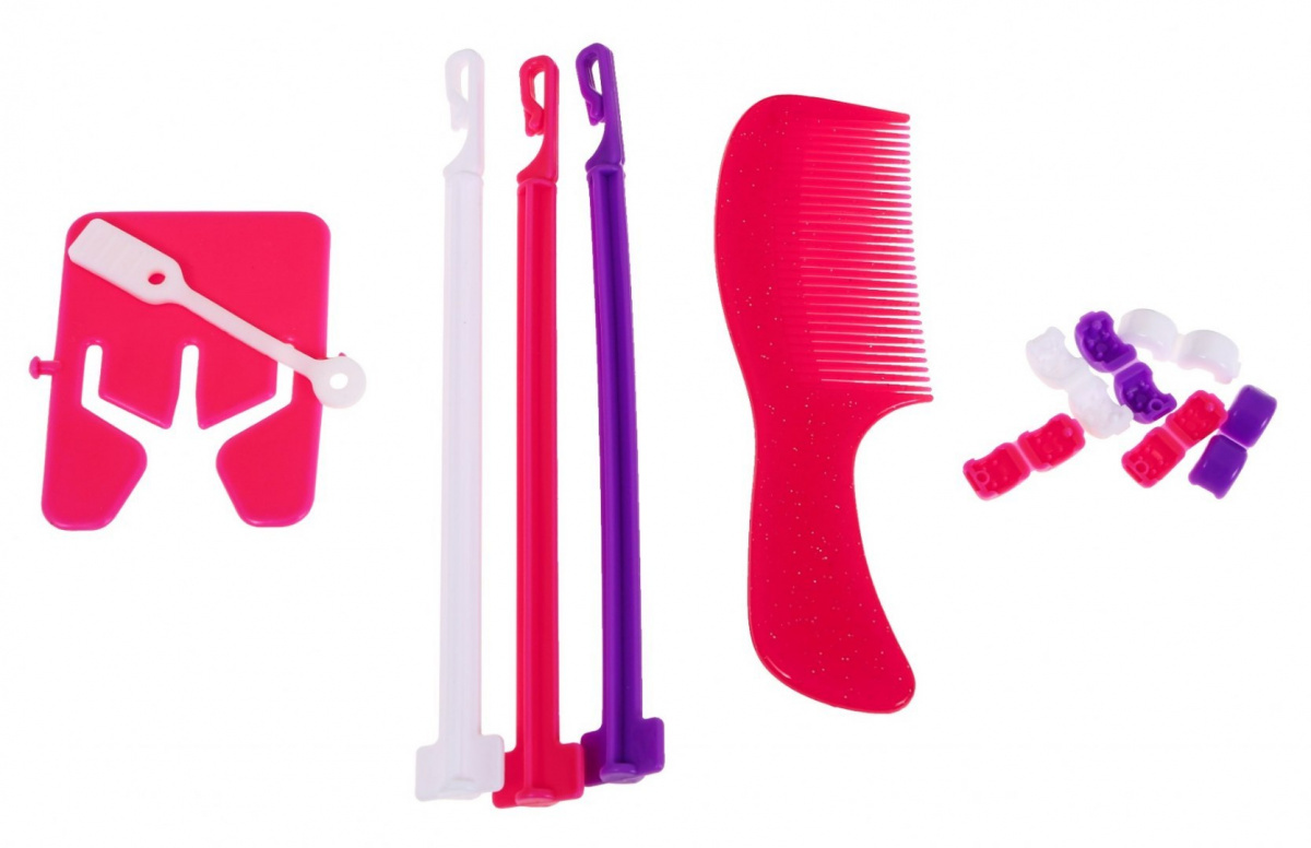 | - zaplatarka warkoczy, - grzebień, - 6 x ozdoby do włosów, - separator do włosów, - 3 haczyki do zaplatarki, - 20 gumeczek do włosów. | |