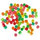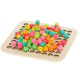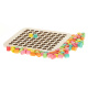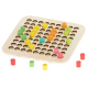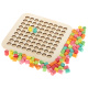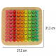 Drewniana ramka zawiera 81 różnokolorowych drewnianych walców.