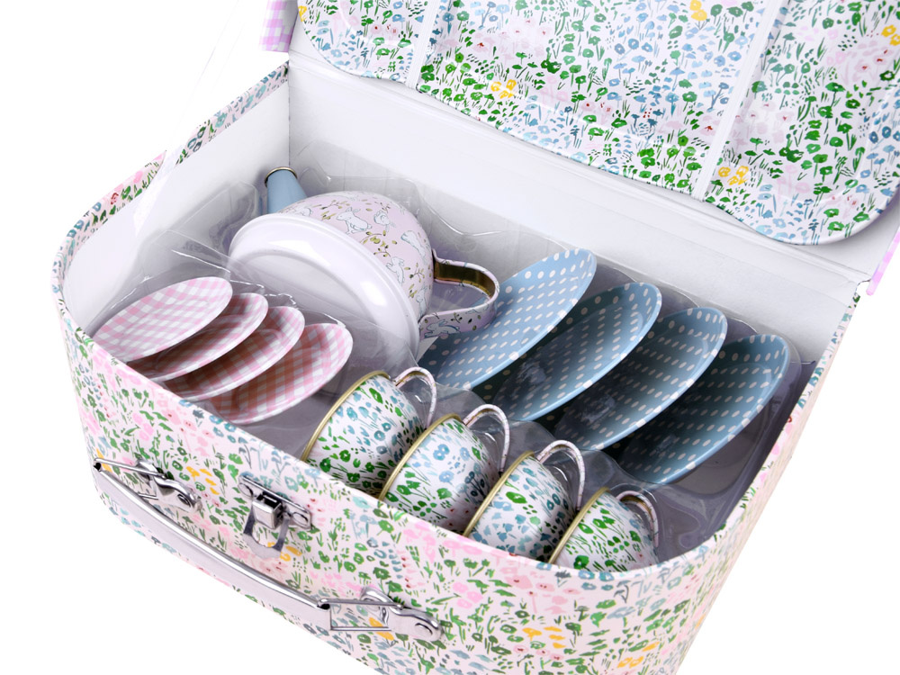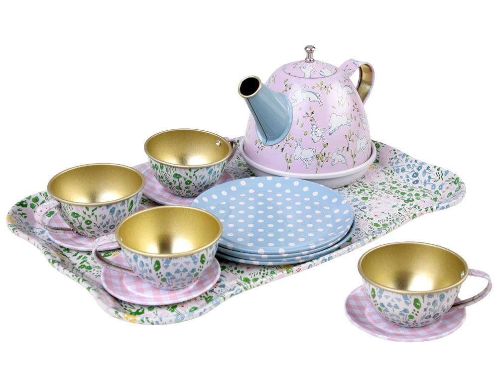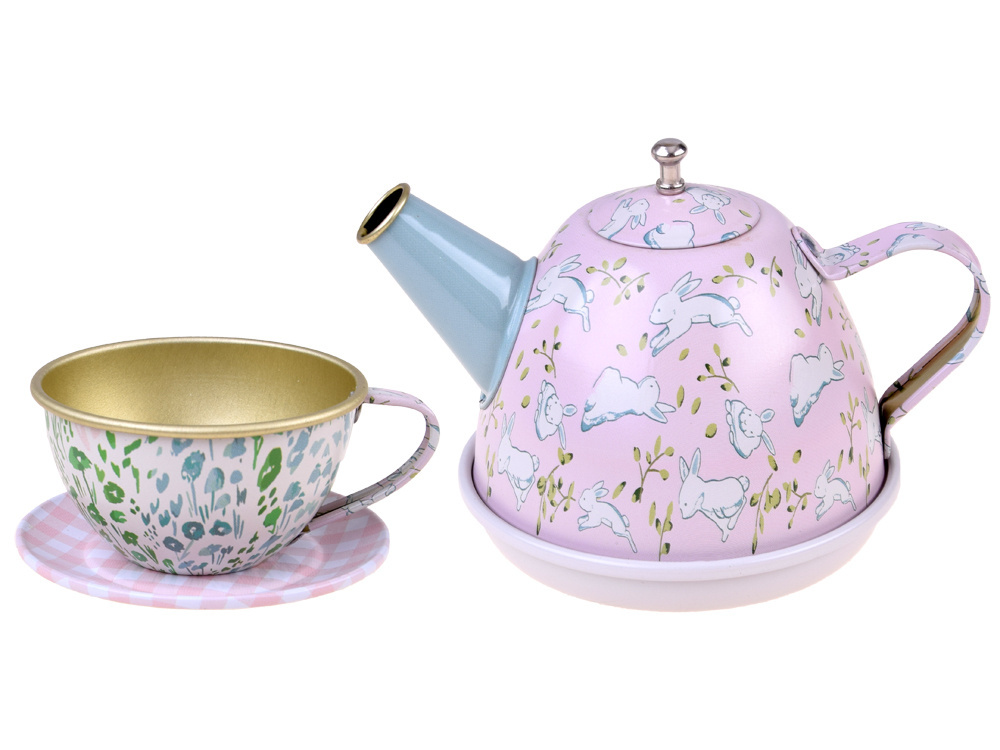 Zestaw jest wykonany z metalu, genialnie imituje prawdziwy serwis śniadaniowo - kawowy. Komplet herbaciano - kawowy zapewni wspaniałą zabawę połączoną z nauką.