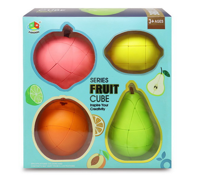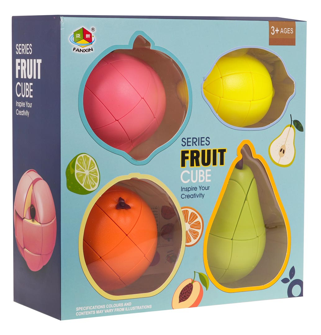 | Zestaw logicznych układanek w kształcie owoców dla dzieci od 3-go roku życia. Elementy owoców obracają się w każdą stronę. Należy pomieszać elementy, a następnie próbować je ponownie ułożyć w kształt owocu. Nie jest to wbrew pozorom łatwe zadanie. Układanie rozwija zdolności ruchowo-myślowe, zdolności manualne, uczy logicznego myślenia.