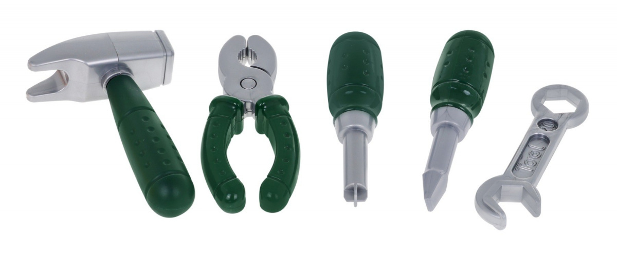 | - kask ok.25,5 cm x 19 cm x 11 cm, - gogle ok. 14 cm x 5 cm x 7 cm, - śrubokręt ok. 13 cm x 3,5 cm, - młotek ok. 13 cm x 8,8 cm, - klucz francuski ok. 13 cm x 4 cm, - obcęgi ok. 14 cm x 6 cm, - opakowanie ok. 51 cm x 36 cm x 6,5 cm. |