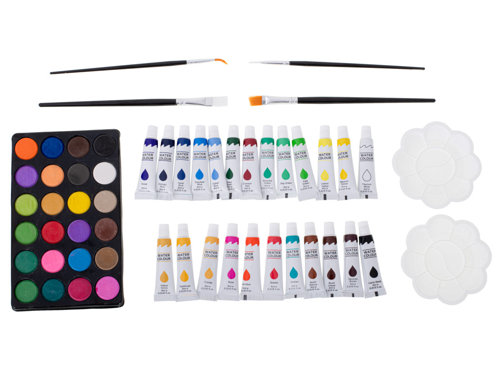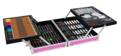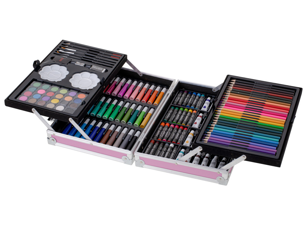 Zestaw oferuje możliwość tworzenia obrazków wykonanych różnymi metodami, ze względu na szeroki wybór przyrządów, takich jak: ołówki, mazaki, kredki, farb akwarelowe, farby w tubce i pastele olejne. Dodatkowo w zestawie znajdują się pomocne akcesoria takie jak: gumki do ścierani, pędzle do malowania farbami, temperówka oraz paletki do farb.