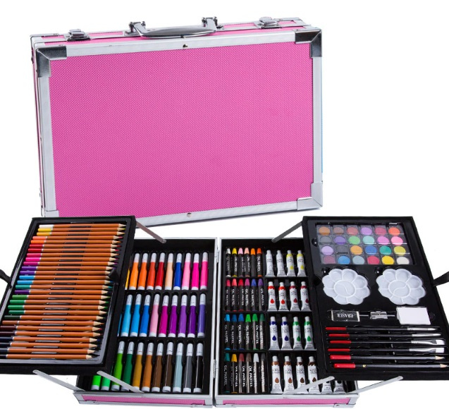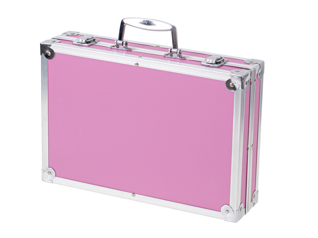 Solidna różowa walizka umożliwia sprawne przechowywanie wszystkich przyborów do malowania w jednym miejscu, które są schludnie ułożone w odpowiednich przegródkach. Zapobiegnie to bałaganowi oraz uczuciu zagracenia, ponieważ wszystko będzie dokładnie ułożone w jednym pojemniku. Dodatkowo żywy kolor walizki będzie się ładnie prezentował na półce, gdy zestaw będzie chwilowo nieużywany.